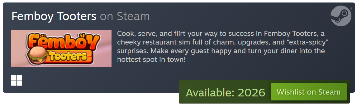 also yes i did just make this account to make 1 comment on a game about femboy hooters before anyone asks
