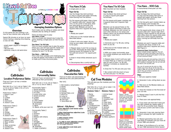 I Have One Cat Tree (...but I have 500 cats) is a singleplayer TTRPG about drawing a cat tree for your collection of cats (ranging from 3 to 500), with fairly simple rules for going about it.