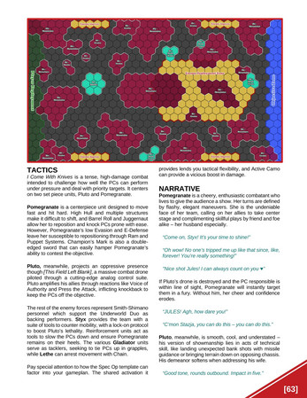 Ironbound Shadows requires setting context from the Field Guide to the Karrakin Trade Baronies, and makes full use of the Bonds system within. It also references NPC templates and classes found in the third-party supplement Field Guide to Suldan and the first-party module Dustgrave to elevate mech combat to more challenging and evocative heights.