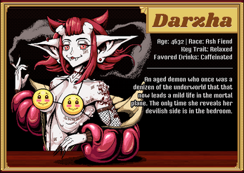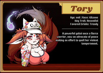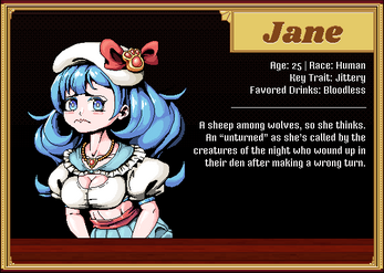 ~ Enter into Bloody Lips, a gaudy bar catering to a vampiric clientele that like their blood mixed with a little alcohol, through the point of view of Primrose, a bartender there known best for being a flirt. And she isn’t always subtle. ~