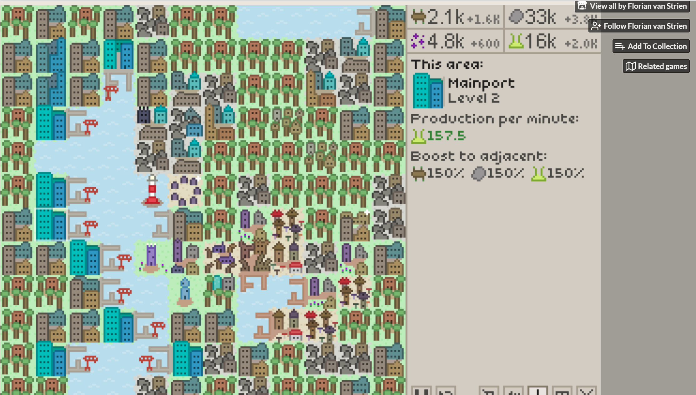 You've really got good balance here! Most casual/puzzle city-builders I've played become pretty boring pretty quick, even ones that look more complex on the surface, but this one is perfectly sized for what it is. I know some people might not like the darkness, but I think it adds needed time constraint