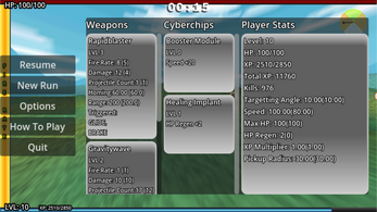 You are a Hyperviber sent on a reconnaissance mission to scout new zones in this area. Your friends will drop Crates in each zone you visit containing supplies, fight back the horde of drones as best you can and upgrade your cyberchips and weapon systems to survive 24 minutes across 3 zones and get extracted to inform the rest of the Hypervibers what you're up against.