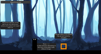 Echoes is a game where you have to enter area switches to activate the door at the end of the level. When you click "R" you will start recording your movements, when finished a ghost will redo all of your actions!