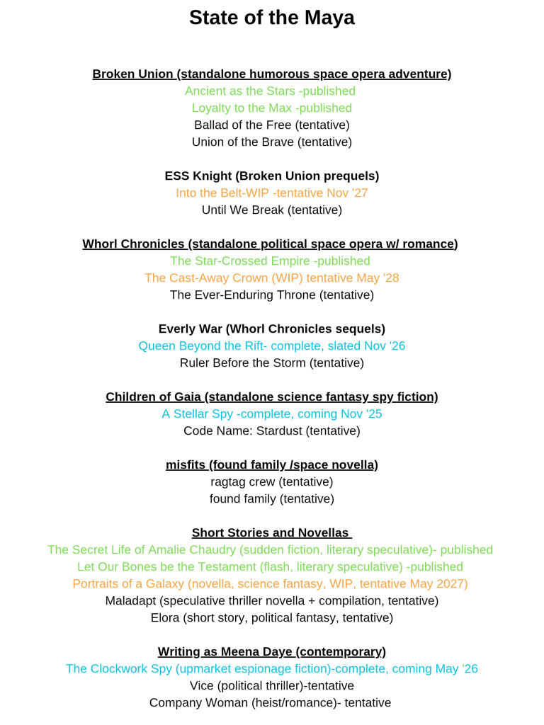 Maya Darjani is a writer, photographer, stay-at-home mother, and former lots of things: counterterrorism officer, legislative correspondent, freelance journalist, and executive assistant. She writes genre-bending fiction about badass women, dual loyalty, and the false promise of patriotism. Maya has been an Author-Mentor Match mentee and a RevPit winner. Her debut indie novel, ANCIENT AS THE STARS–a Firefly x Expanse space adventure with humor, snark, and lots of heart–launched June 2024, and her Vorkosigan-inspired romantic space opera, THE STAR-CROSSED EMPIRE, released in November 2024. You can find her at mayadarjani.com and linktr.ee/MayaDarjani and on social media: Twitter (@DarjaniMaya), TikTok/Threads/Instagram/BlueSky (@mayadarjani)