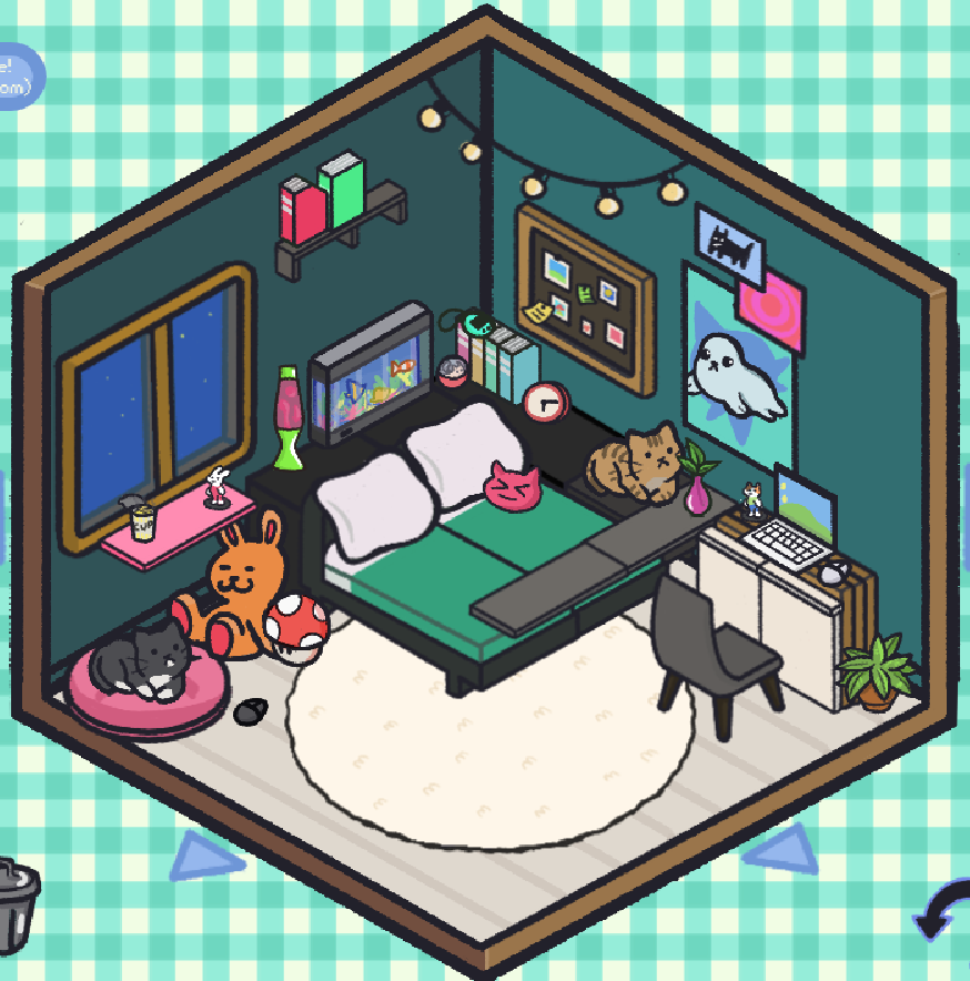 This game is so cute!!!!!! This is how I want my future room to look, with dif posters, cats, and plushies ofc. but I love this game so much <3333333 Have a good day chat :) :D :P