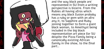 and that's why i'm confused by amethyst being included in black history things- i saw everyone project onto amethyst at different times- viewing her as black, latino, asian, etc etc, so them lumping her into being black post the show's conclusion was honestly so weird!!
