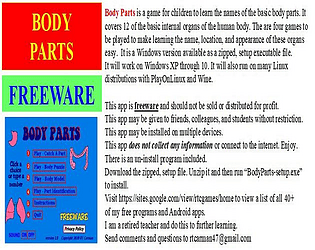 Body Parts is a game for children to learn about 12 of the basic internal human body parts.