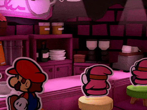 Birdo: Whoa. Slow down boys. Your enthusiasm? Adorable. But I'm not sure either of you has what I'm looking for. I need a STRONG little go-getter. A rugged handyman who gets the job done... And-lucky- me-I hear we have a CELEBRITY in the auidence who fits the bill! He's got sensitive eyes... a burly mustache... nice, beefy calves to power those big jumps... Get on up here Mario! Lets see you go toe to toe with these shellions!