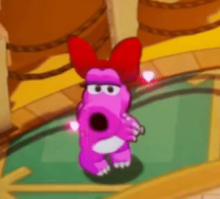 Birdo: Are... Are you saying that was all my fault?!? Ooh!!! Shocking, I say! *Proceeds to hit Popple out of Teehee Valley*
