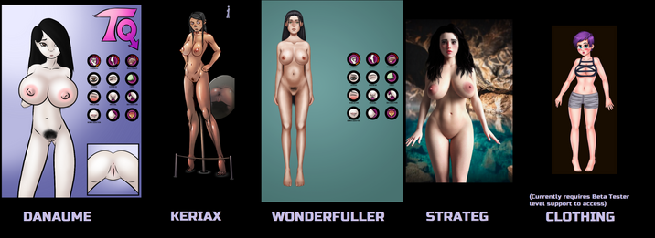 Early access to alpha features of Trap Quest. One of the biggest things you'll have access to that others won't is epilogues, since most are still under construction. Other early alpha features often include the newest GUI updates, NPCs and actions. You also get access to some debug functions that let you vary body size / vary stats / ignore dignity limitations and lots of other cool stuff willy-nilly.
