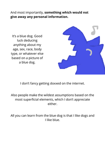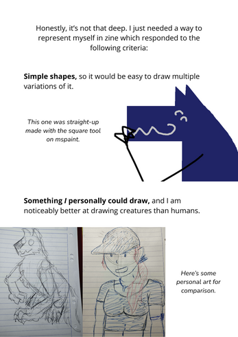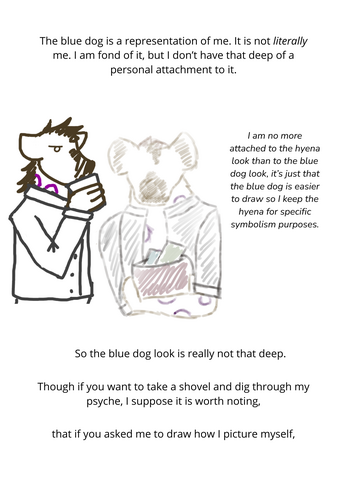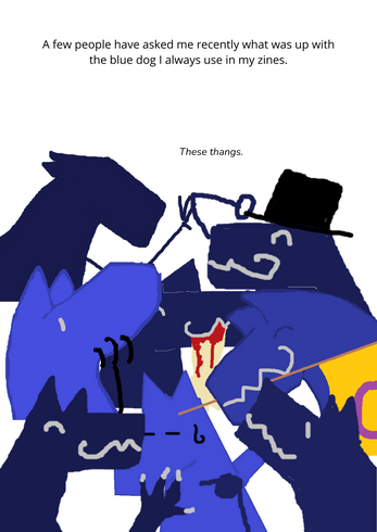 A 12 pages long zine about self perception, self representation, and why I keep drawing myself as a blue dog.