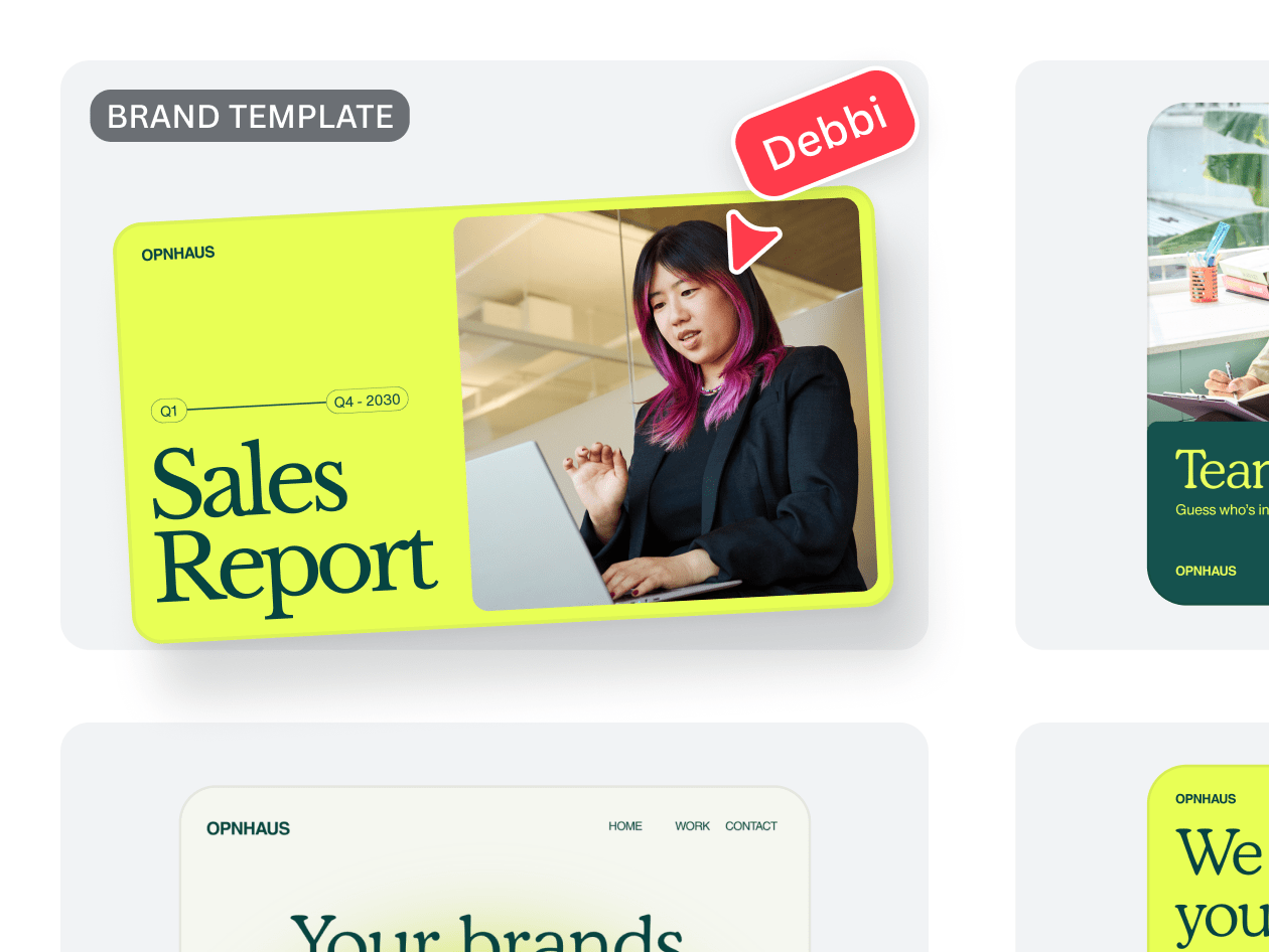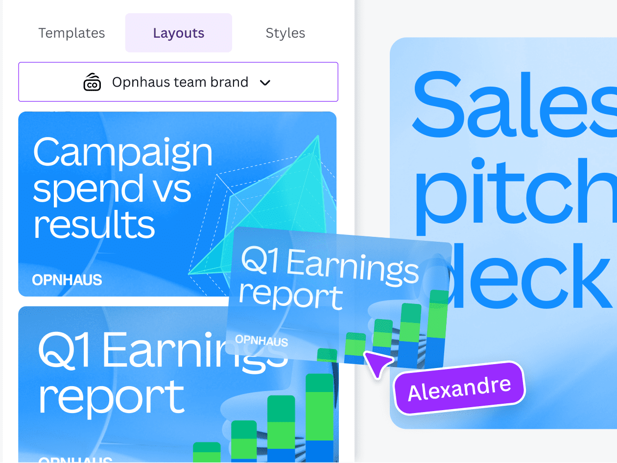 Canva ayuda a los representantes de ventas a crear presentaciones de ventas, propuestas y materiales complementarios profesionales en cuestión de minutos. Con plantillas listas para usar y fáciles de personalizar, los equipos pueden crear contenido fiel a la identidad visual de la marca, lo que les permite dedicar menos tiempo al diseño y más tiempo a cerrar tratos.
