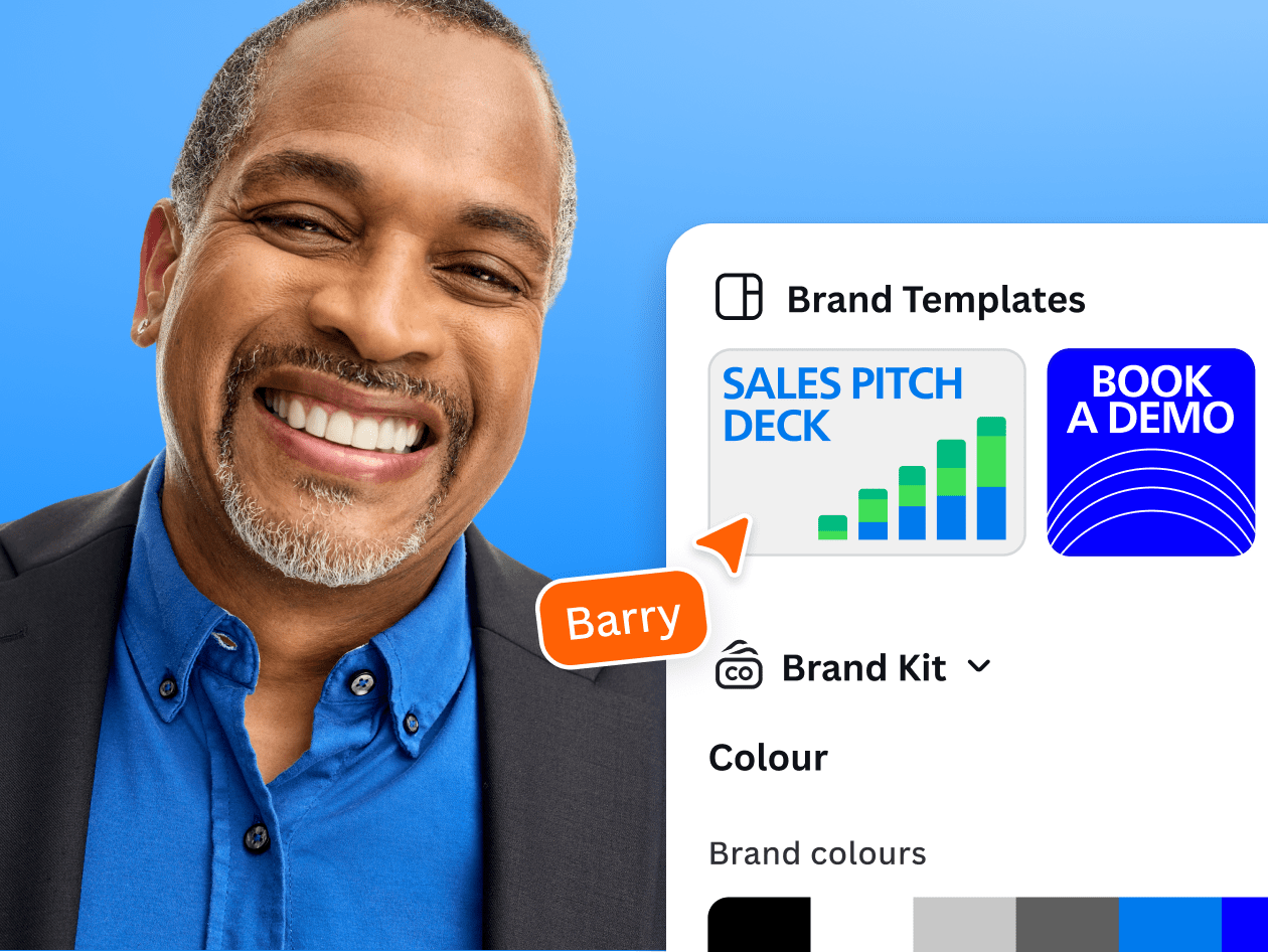 Sí. Las herramientas de diseño y gestión de marca de nivel empresarial de Canva lo hacen ideal para B2B y grandes organizaciones de ventas. Con controles de permisos, flujos de trabajo de aprobación e integraciones, los líderes de ventas pueden mantener la uniformidad y, al mismo tiempo, permitir que los representantes de ventas creen contenido por su cuenta.