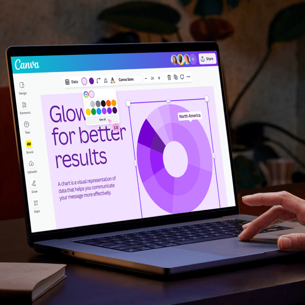 Los representantes pueden personalizar sin complicaciones las plantillas agregando logos, nombres, datos y mensajes a la medida, sin esperar a que les ayuden con el diseño. Canva ayuda a los equipos de ventas a ofrecer contenido personalizado y fiel a la identidad visual de la marca, que resuene en cada cliente para acelerar los ciclos de ventas.