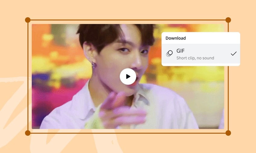 Say goodbye to juggling multiple tools for your GIF needs. Canva’s free GIF converter lets you turn GIFs into MP4, PDF, PNG, JPG, or SVG (Pro) for seamless sharing. Alternatively, create high-quality GIFs from your photos and videos in just a few clicks, perfect for memes, reactions, and social posts.