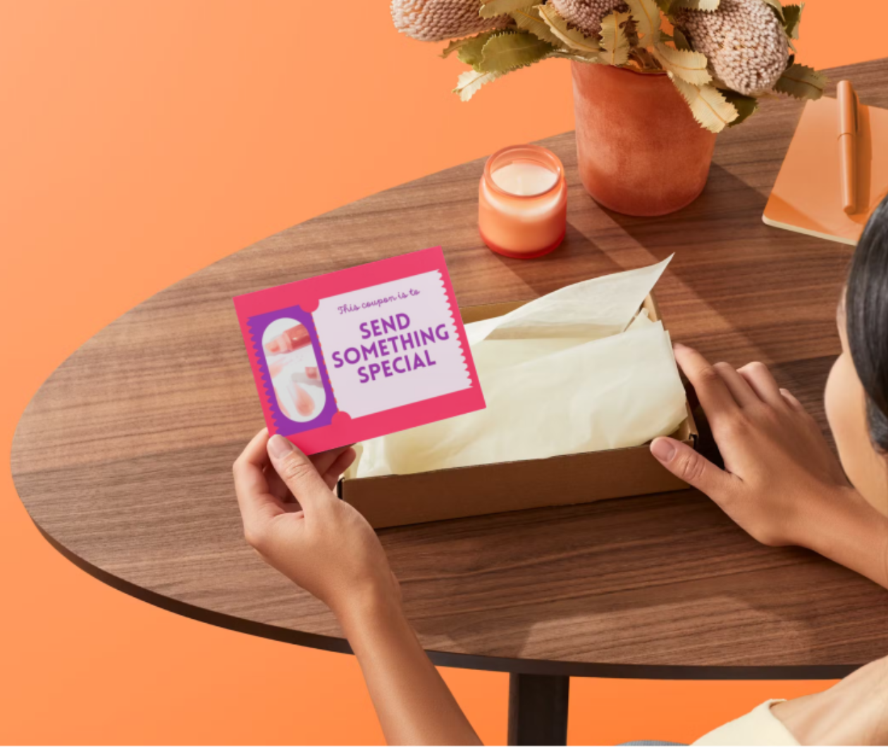 With Canva, print high-quality gift certificates and have them delivered for free to start reinforcing your brand’s identity, values, and customer loyalty.
