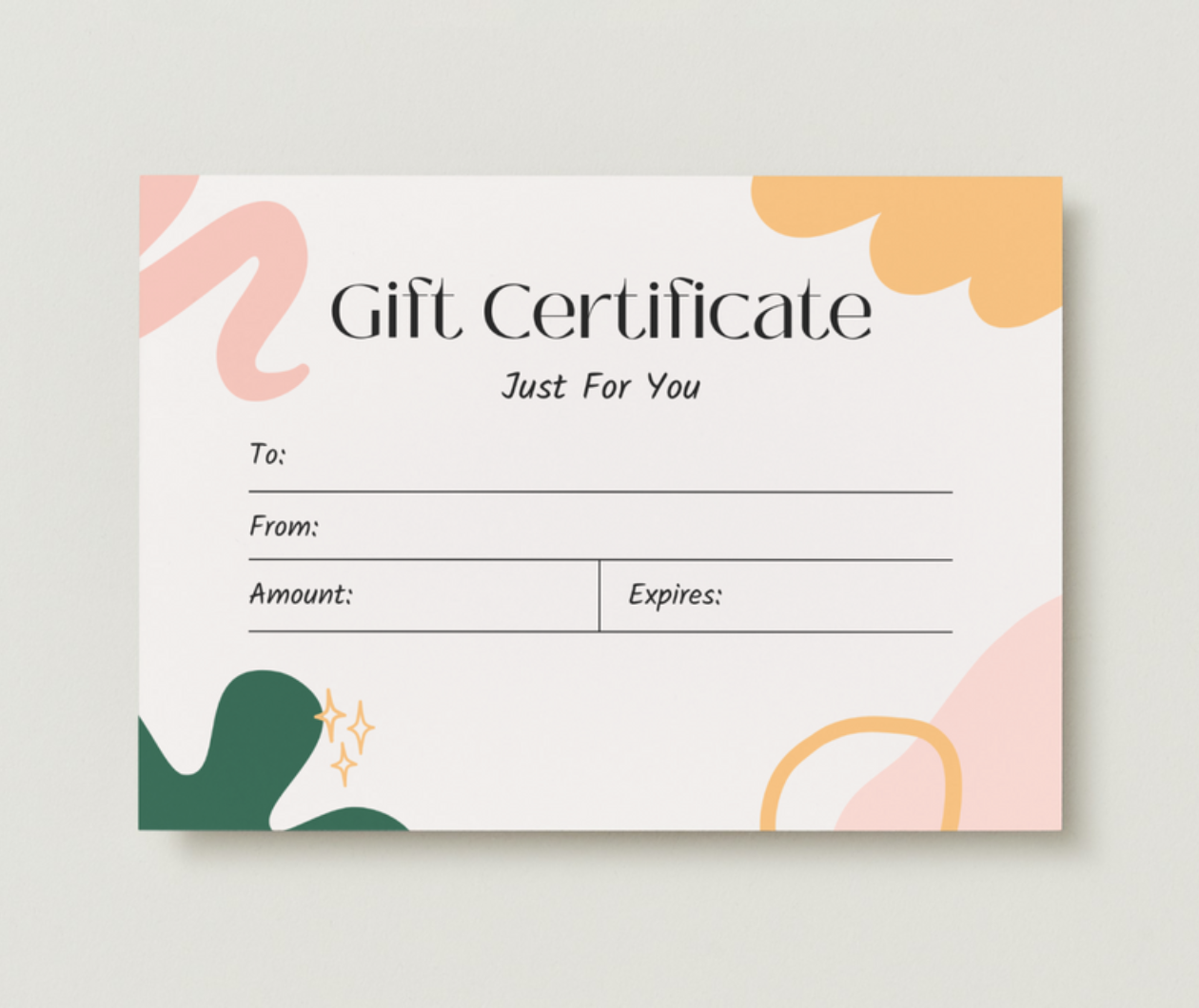 Customize your gift certificate online by replacing the text, choosing your favorite font, and experimenting with the color palette.