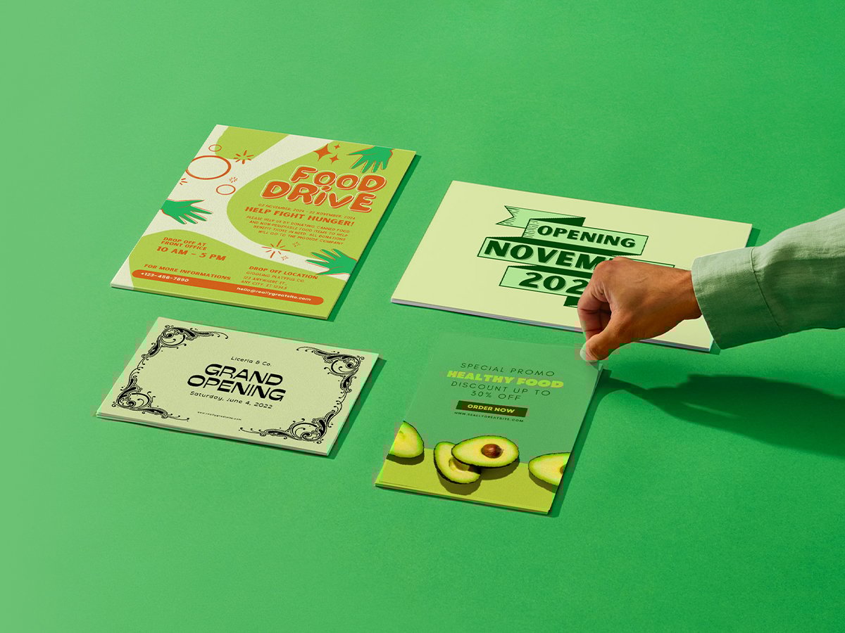 ออกสตาร์ทได้เหนือกว่าด้วยดีไซน์ใบปลิวแบบกำหนดเองด้วยเท็มเพลตฟรีที่ดีไซน์ไว้ล่วงหน้าซึ่งสามารถใช้กับธุรกิจ การตลาดงานอีเวนต์ การขาย การบริการ และอื่นๆ อีกมากมาย