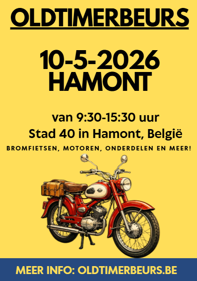 De bromfietsbeurs zal plaatsvinden op 10 mei 2026 bij het Stadhuis (Adres: Stad 40) in Hamont, België.